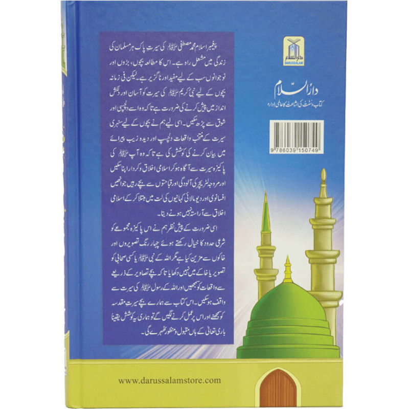 پیغمبر اسلام محمد مصطفی ﷺ کی سیرت پاک ہر مسلمان کی زندگی میں مشعل راہ ہے۔ اس کا مطالعہ بچوں، بڑوں اور نوجوانوں سب کے لیے مفید اور ناگزیر ہے ۔لیکن فی زمانہ بچوں کے لیے نبی کریم ﷺ کی سیرت کو آسان اور دلکش انداز میں پیش کرنے کی ضرورت ہے تا کہ وہ اسے دلچسپی اور شوق سے پڑھ سکیں ۔اس لیے ہم نے بچوں کے لیے سنہری سیرت کے منتخب واقعات دلچسپ اور دیدہ زیب پیراۓ میں بیان کرنے کی کوشش کی ہے تا کہ وہ آپ ﷺ کی پاکیزہ سیرت سے آگاہ ہو کر اسلامی اخلاق وکردارا پناسکیں اور مروجہ لٹریچر کی آلودگی اور قباحتوں سے بچے رہیں جو انھیں افسانوی اور دیو مالائی کہانیوں کی لت میں مبتلا کر کے اسلامی اخلاق سے آراستہ نہیں ہونے دیتا۔ اسی ضرورت کے پیش نظر ہم نے اس پاکیزہ مجموعے کو شرعی حدود کا خیال رکھتے ہوۓ چہار رنگ تصویروں اور خاکوں سے مزین کیا ہے مگر اللہ کے نبی سلام یا کسی صحابی کو تصویر یا خاکے میں نہیں دکھایا تا کہ بچے تصاویر کے ذریعے سے واقعات کو سمجھیں اور اللہ کے رسول سلام کی سیرت سے واقف ہوسکیں۔