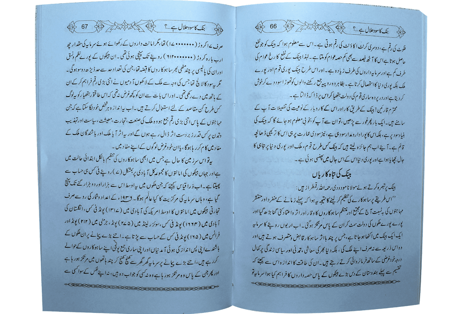 زیرِنظر کتاب کا مقصد بنک کے سود کے بارے میں اسلامی نقطہَ نظرکی وضاحت ہے،بیمہ پر بھی بحث کی گئی ہےاسکی مختلف قسموں میں اجتماعی و تعاونی بیمہ کے جوازپر مکہ مکرمہ میں جو اجماع منعقدہوا تھا اس کی قرادادپیش کی گئی ہےجہاں تجارتی بیمہ کو اس کی تمام صورتوں اور شکلوں کے ساتھ حرام قراردیا ہے۔