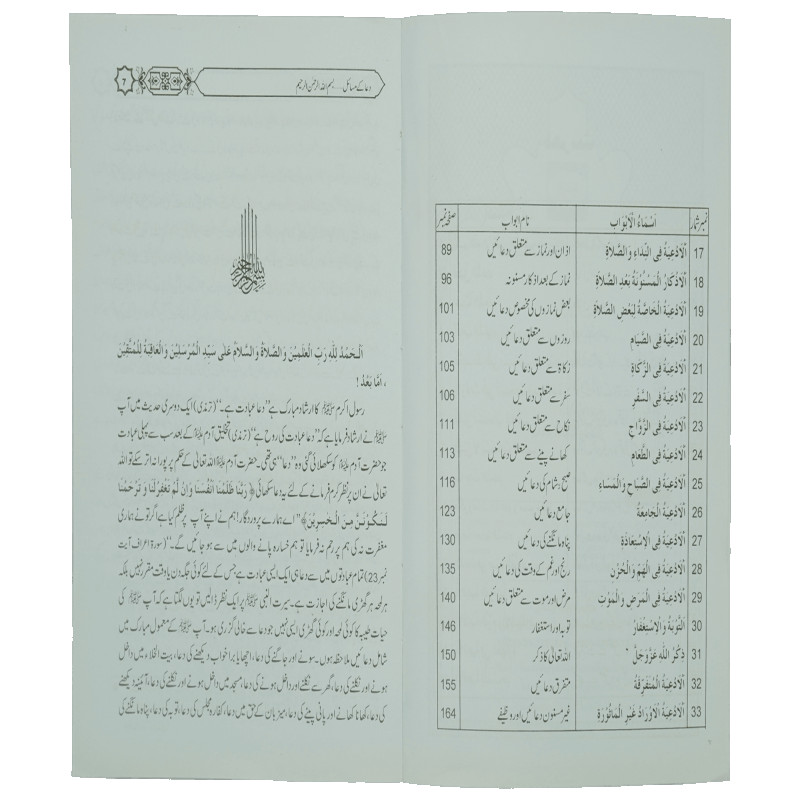 اس کتاب میں دعا کی فضیلت، دعا کے آداب، قبولیت دعا کے اوقات، قبولیت دعا کے کلمات، دعا میں جائز امور دعا میں ممنوع امور، قبولیت دعا کی مختلف صورتیں، قرآنی دعائیں، نیز سونے اور جاگنے کی دعائیں، طہارت سے متعلق، نماز سے متعلق، روزوں سے متعلق، سفر سے متعلق دعاؤں کے علاوہ صبح و شام کے اذکار، رنج و غم اور بیماری سے متعلق دعائیں احادیث صحیحہ کی روشنی میں بیان کی گئی ہیں۔