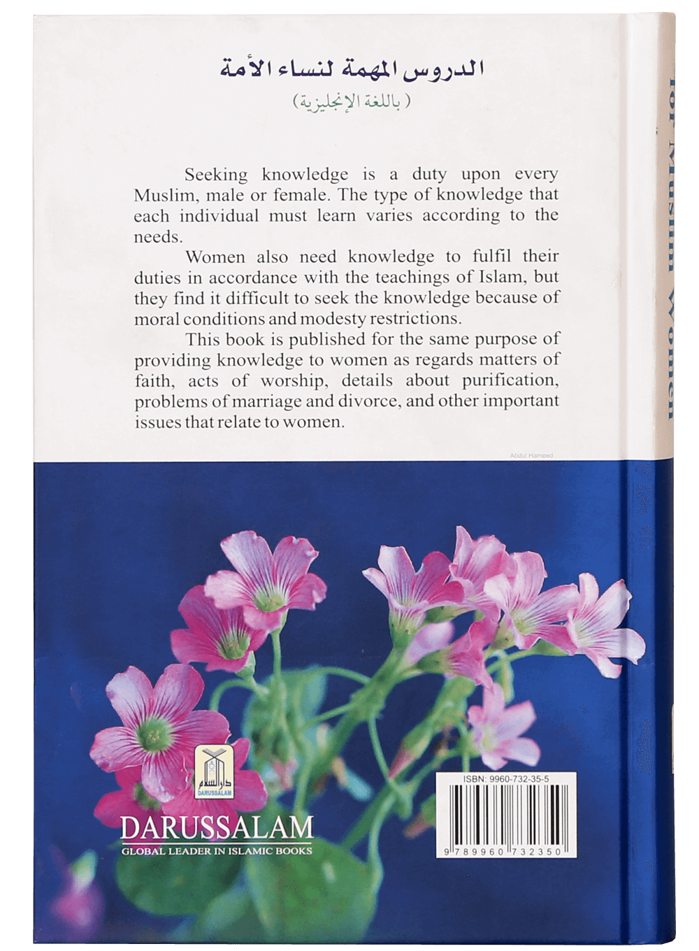 Seeking knowledge is a duty upon every Muslim, male or female. The type of knowledge that each individual must learn varies according to the needs. Women also need the knowledge to fulfill their duties in accordance with the teachings of Islam, but they find it difficult to seek knowledge because of moral conditions and modesty restrictions. This book is published for the same purpose of providing knowledge to women as regards matters of faith, acts of worship, details about purification, problems of marriage and divorce and other important issues that relate to women.