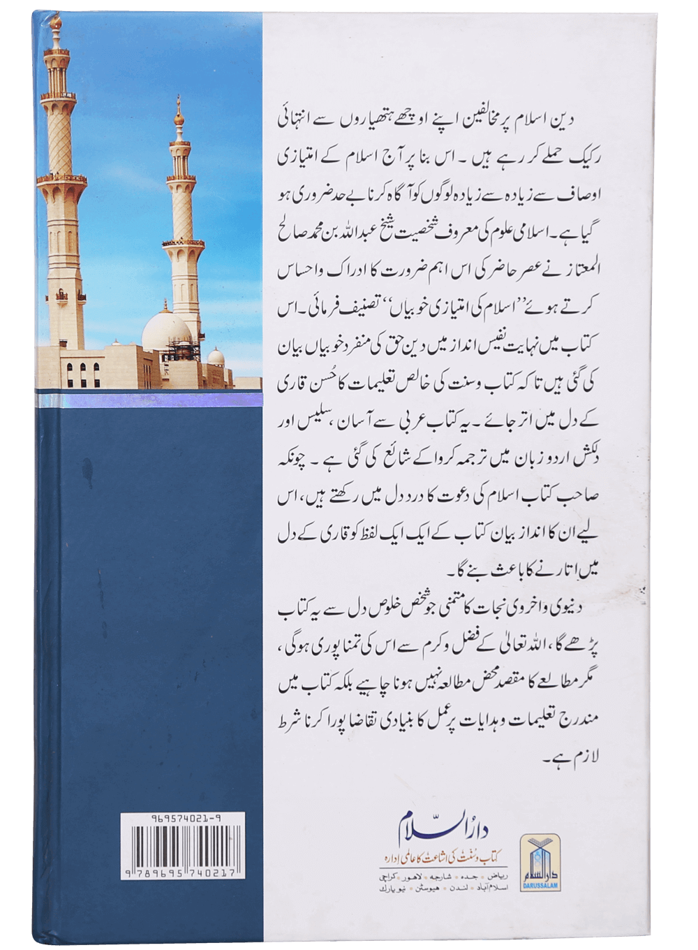 دین اسلام پر مخالفین اپنے اوچھے ہتھیاروں سے انتہائی رکیک حملے کر رہے ہیں۔ اس بنا پر آج اسلام کے امتیازی اوصاف سے زیادہ سے زیادہ لوگوں کو آگاہ کرنا بے حد ضروری ہوگیا ہے۔ اسلامی علوم کی معروف شخصیت شیخ عبداللہ بن محمد صالح المعتاز نے عصر حاضر کی اس اہم ضرورت کا ادراک و احساس کرتے ہوئے `اسلام کی امتیازی خوبیاں` تصنیف فرمائی۔ اس کتاب میں نہایت نفیس انداز میں دین حق کی منفرد خوبیاں بیان کی گئی ہیں تا کہ کتاب و سنت کی خالص تعلیمات کا حسن قاری کے دل میں اتر جائے۔ یہ کتاب عربی سے آسان ، سلیس اور دلکش اردو زبان میں ترجمہ کروا کے شائع کی گئی ہے۔ چونکہ صاحب کتاب اسلام کی دعوت کا درد دل میں رکھتے ہیں، اس لیے ان کا انداز بیان کتاب کے ایک ایک لفظ کو قاری کے دل میں اتارنے کا باعث بنے گا۔ دنیوی و اخروی نجات کا متمنی جو شخص خلوص دل سے یہ کتاب پڑھے گا، اللہ تعالیٰ کے فضل و کرم سے اس کی تمنا پوری ہوگی، مگر مطالعے کا مقصد محض مطالعہ نہیں ہونا چاہیے بلکہ کتاب میں مندرج تعلیمات و ہدایات پر عمل کا بنیادی تقاضا پورا کرنا شرط لازم ہے۔
