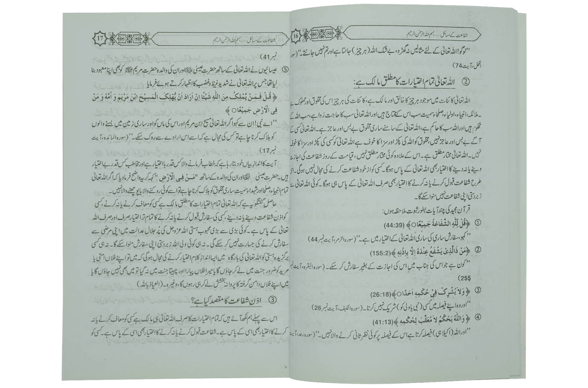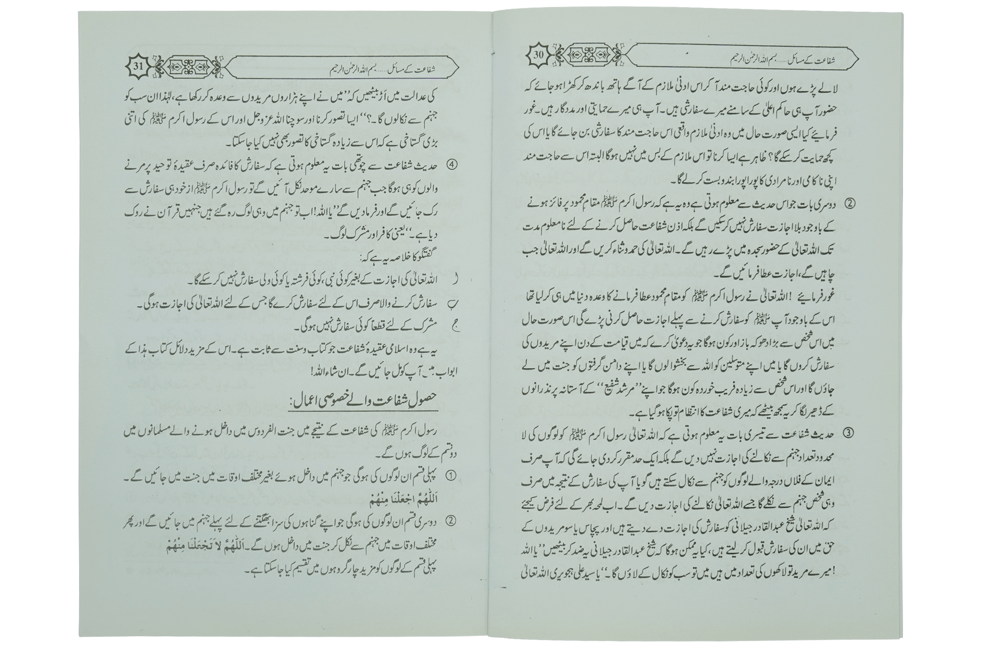 اس کتاب میں شفاعت کی تعریف، شفاعت کے مشرکانہ عقیدہ کی مذمت، شفاعت کا صحیح عقیدہ، قبولیت شفاعت کی شرائط، حصول شفاعت والے اعمال، شفاعت کی اقسام، شفاعت کبریٰ، اصحاب اعراف کے لیے شفاعت، اہل کبائر کے لیے شفاعت، بلندی درجات کے لیے شفاعت، نیز اللہ عزوجل کی شفاعت کے مسائل پر قرآن و حدیث کی روشنی میں گفتگو کی گئی ہے۔