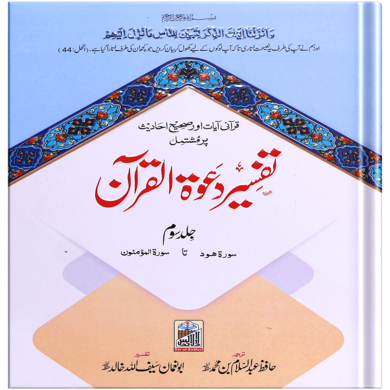 انسانیت کی رشد و ہدایت کے لیے خدا تعالیٰ کی جانب سے قرآن مجید کا نزول ہوا۔ یہ صحیفہ خداوندی اپنے اندر تمام لوگوں کی اجتماعی و انفرادی مشکلات کا کامل حل سموئے ہوئے ہے۔ اس میں سعادت دارین کے انمول اصول بیان کیے گئے ہیں۔ قرآن کریم کی متعدد زبانوں میں سیکڑوں تفاسیر سامنے آچکی ہیں۔ جن میں تفاسیر بالماثور بھی شامل ہیں اور تفاسیر بالرائے بھی۔ قرآن کریم کی زیر نظر تفسیر ’تفسیر دعوۃ القرآن‘ تفسیر بالماثور پر مشتمل ہے اور تفاسیر کی دنیا میں ایک خوش کن اضافہ ہے۔ مفسر نے روز و شب کی محنت اور نہایت عرق ریزی کے ساتھ ایک ایسی تفسیر پیش کی ہے جس سے عوم و خواص یکساں طور پر مستفید ہو سکتے ہیں۔ انہوں نے سب سے پہلے تفسیر قرآن بالقرآن کو سامنے رکھا ہے، کیونکہ قرآن کریم کی بہت سی آیات ایسی ہیں جو ایک جگہ اجمالاً بیان ہوئی ہیں جبکہ دوسری جگہ ان کی تفصیل موجود ہے۔ بعض لوگوں کا کہنا ہے کہ کچھ احادیث قرآنی آیات کے خلاف ہیں۔ مولانا نے قرآن کی تفسیر و تبیین میں احادیث لاکر ثابت کیا ہے کہ کوئی بھی صحیح حدیث ایسی نہیں ہے جو قرآنی مفہوم کے مخالف ہو۔ مولانا موصوف نے تفسیر کرتے ہوئے ضعیف اور موضوع احادیث رقم کرنے سے گریز کیا ہے۔ اور صرف صحیح اور حسن احادیث سے استدلال کیا ہے۔ علاوہ ازیں تفسیر میں حسب موقع صحابہ کرام کے اقوال بھی نقل کیے گئے ہیں۔ کیونکہ قرآن کریم کی تفہیم میں صحابہ کرام کے صحیح اور مستند اقوال ایک روشن باب کی حیثیت رکھتے ہیں۔ حضور نبی کریمﷺ کا اشاد گرامی بھی ہے کہ : چار آدمیوں سے قرآن سیکھو: عبداللہ بن مسعود، سالم مولیٰ حذیفہ، معاذ بن جبل اور ابی بن کعب سے۔ قرآن کی تفسیر میں عموماً رطب و یابس سے بھرپور اسرائیلی روایات کو بیان کرنا معیوب نہیں سمجھا جاتا لیکن مولانا نے ان تمام اسرائیلی روایات سے اجتناب کیا ہے جن کا جھوٹ ہونا کتاب وسنت سے ثابت ہے۔ تفسیر میں موجود تمام احادیث و آثار کی مکمل تخریج و تحقیق کی گئی ہے۔ اس کے علاوہ صورتوں کی شان نزول کے ضمن میں صرف اور صرف مستند روایات کا حوالہ دیا گیا ہے۔ اللہ تعالیٰ سے دعا ہے کہ وہ اس تفسیر کو نافع خلائق بنائے۔